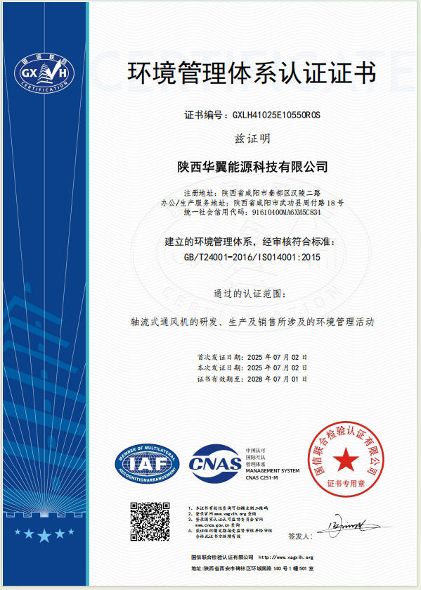 環(huán)境管理體系認證證書
